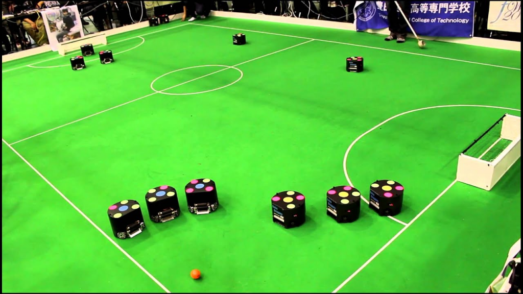 Puedes ver muchos partidos y demostraciones si buscas «Robocup» en Youtube.