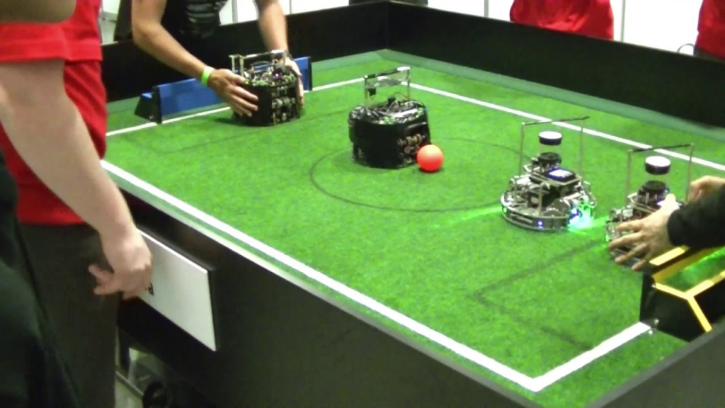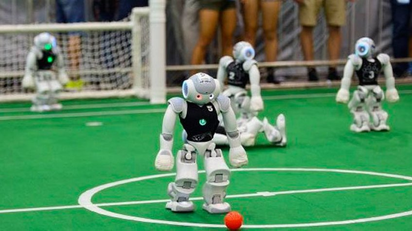 En cuanto al terreno de juego se tienen dentro del campo jugadores del propio equipo, jugadores del equipo contrario y un balón que hay que perseguir y encajar en la portería del adversario: el buen robot futbolista debe ser capaz de registrar los movimientos de todos estos elementos y usarlos para anticipar los propios, lo que no es nada fácil. Además, esos movimientos propios están guiados por la necesidad de colaborar con los compañeros de equipo con el objetivo de meter goles, lo cual requiere tener en mente una estrategia. Como metáfora de la vida, el futbol no está mal.