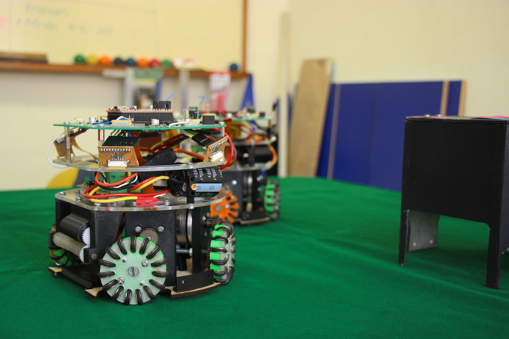 La iluminación de la cancha debe ser lo más estable posible para no producirles confusión a los procesadores de los robots. También es importante controlar los colores de los jugadores. Un equipo podría decidir pintar a sus jugadores con líneas y puntitos raros y luego dotarlos de un sistema de percepción visual capaz de procesar el complicado patrón, pero sería injusto para el otro equipo. Por eso hay reglas para los uniformes y parar identificar a los jugadores individuales. En la liga Small Size cada jugador es como una cajita con ruedas y cinco círculos de colores pintados en la parte superior. El círculo central es para el color del equipo (que puede ser azul o amarillo). Los otros colores distinguen a los jugadores, que además deben llevar un número, como los jugadores humanos.